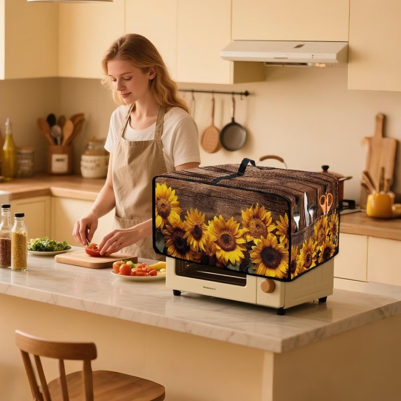 Doojoayie Sunflower Toaster Cover 4 Slice Kitchen Appliance Covers 18.5"x14.5"x 9" Small Appliance Dust Protector with Top Handle Easy to Storange