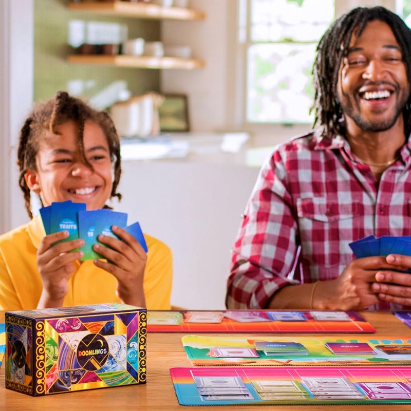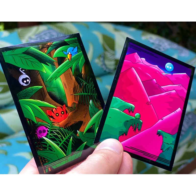 - Premium Design - With dual-surfaced, mirrored silver interiors and distinctive "Green Jungle" back for Trait cards and "Pink moonlit" landscape for the Ages. Each Doomlings card feels like it's inside a picture frame!