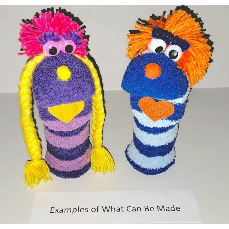 - Each Doopalpoops kit comes with materials to make 2 different sock puppets.