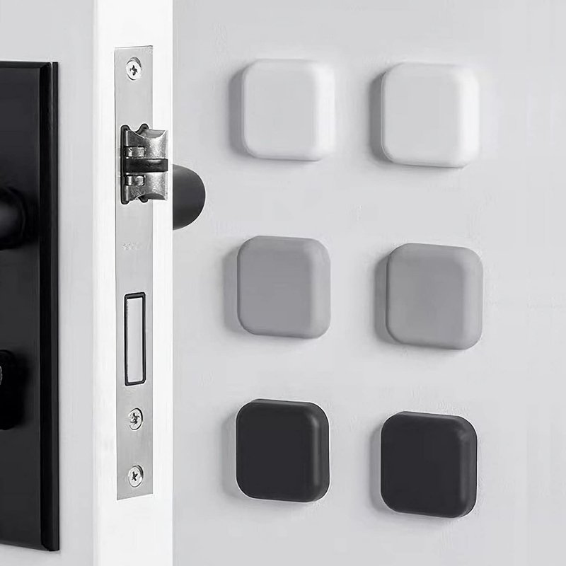 - Pack of 6 pieces square door wall protectors. Three colors of white, gray and black, two pieces of each color.