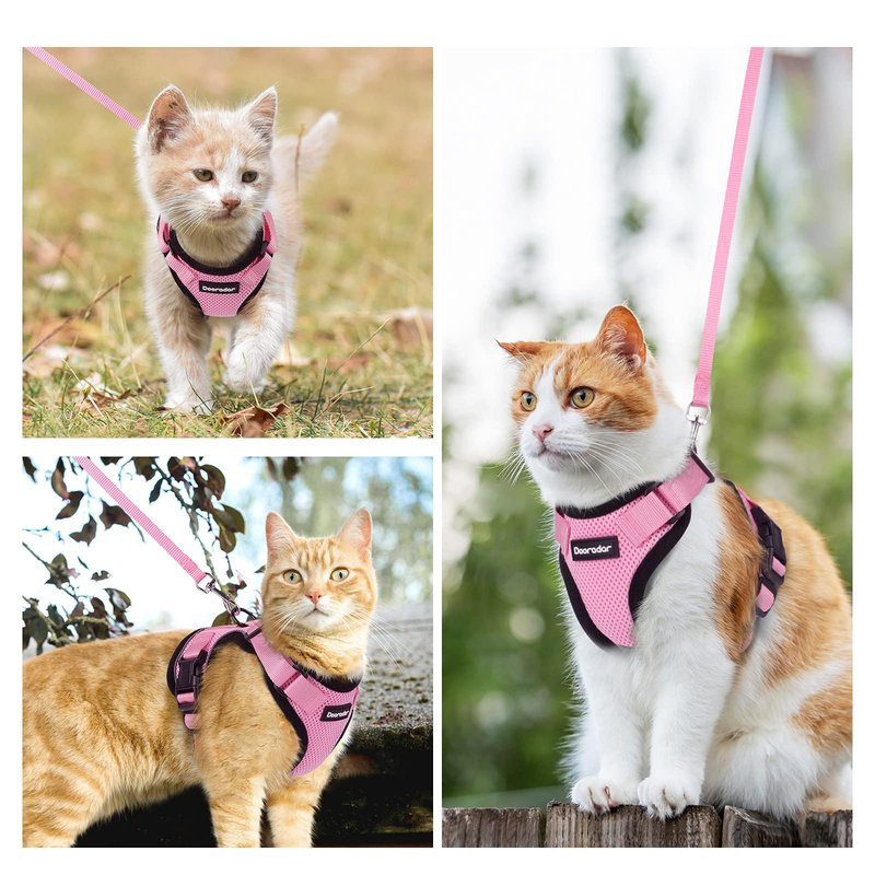 - Escape-proof Cat Harness - Our harness can wrap cats comfortably in 360 degrees. Coupled with a thick and firm leash, not easy to break, multiple protection, make the cat unable escape. Suitable for daily walking, jogging, training, and any outdoor recreations. With Dooradar escape-proof cat harness, it is easy to take the kitten to a strange place to travel, and no longer have to worry about the cat getting lost