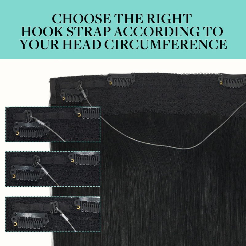 - 【Easy to replace - only 3 minutes】 You can install it in just three minutes. The elastic wire can be adjusted according to the head circumference. Choose the right size according to your head circumference, and then hang the hooks on the hook straps on both sides. There are three hook straps on each side of the hair extension. You can hang the hooks on different hook straps and choose the suitable for you.