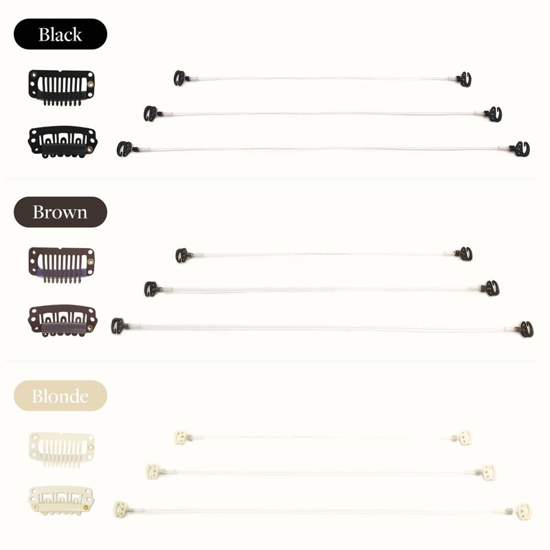 DOORES Black Invisible Elastic Wire for Wire Hair Extensions 3pcs 18.5cm 20.5cm 25.5cm Secret Adjustable Fish Line with 2 Stainless Steel Clips