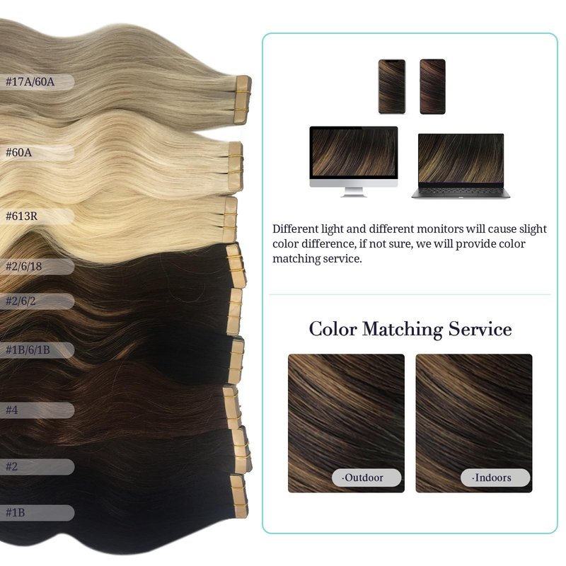 - 【Color Differences & Color Match Service】Due to the light and display, the exact color may be slightly different from the color shown in the picture. In case you're not sure about the color of the hair extension, kindly share an image of your hair with us. We will provide you with color matching service.