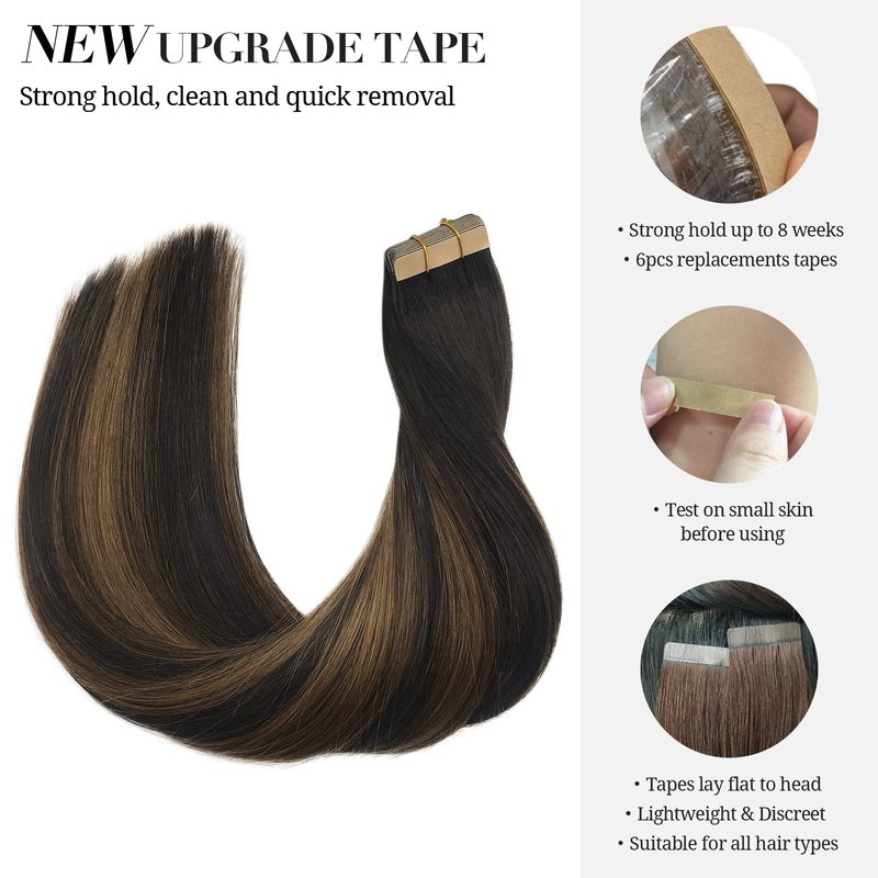 DOORES Hair Extensions Tape in Human Hair Balayage Dark Brown to Chestnut Brown 20pcs 50g 20 Inch Silky Straight Tape in Human Hair Extensions Natural Hair Skin Weft