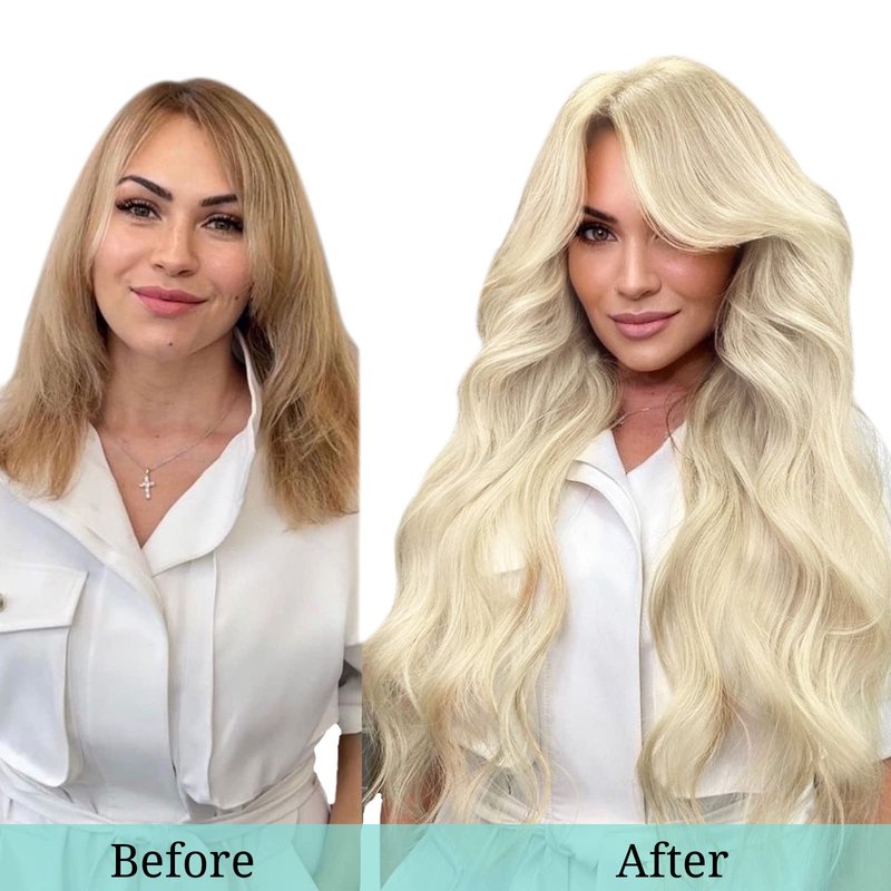 - 【U-Shape Metal Clips to Reduce Tear & 5 Minutes Quick to Wear】Stainless steel metal clips with unique U-shaped design are firm, making it comfortable to wear. The back has a soft rubber silicone which effectively reduces the pulling on the hair and protects your scalp. You can easily wear or take off the hair extensions within 5 minutes. Even if it's your first time wearing a hair extension, you can easily handle it.
