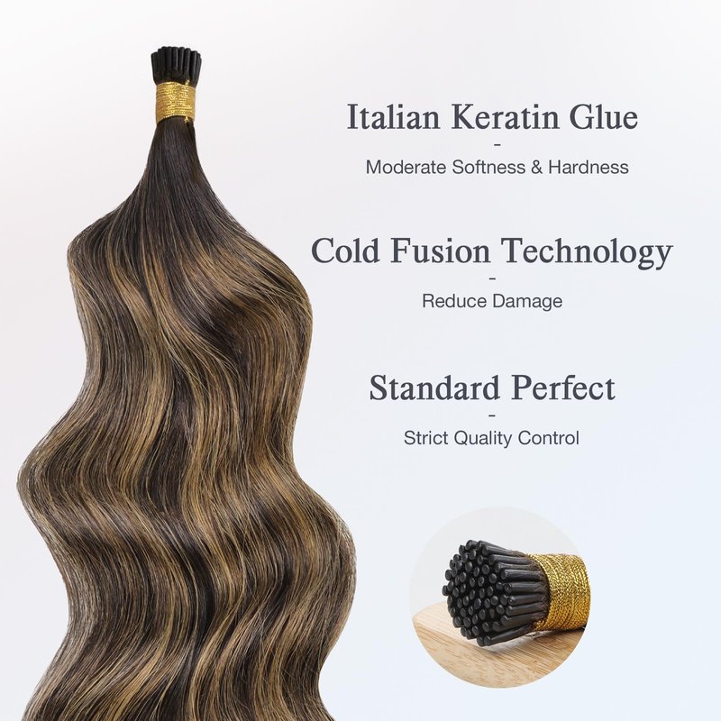 - [9A Grade High Quality Remy Human Hair--Effectively Extending Usage Time] The remy material's i tip hair extensions are neither dry nor knotted, nor does it have a split end, providing you with the most comfortable wearing experience. 100% human hair extensions are more flexible and textured, allowing for various styling options, but please note that the temperature of the curler should be controlled below 430°F. Proper care can keep i tip hair extensions in use for up to 4 months.