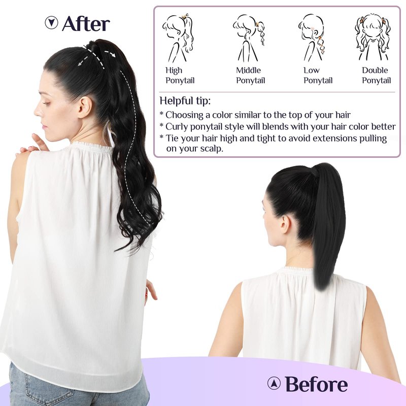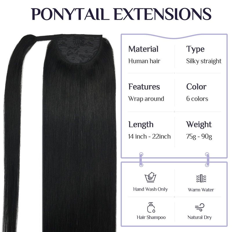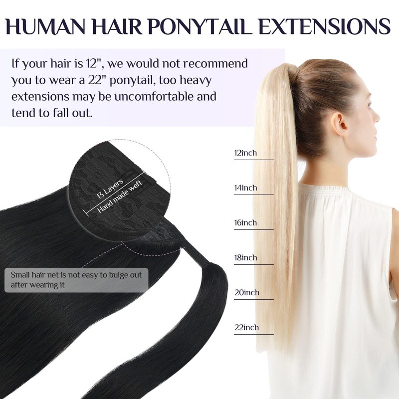 - 【Multiple Choices For Multiple Occasions & Only 5 minute to apply】We are 75-90g real human hair and the package comes with a head strap of the same color and a fixed clip, 14-22 inches optional, you can choose at will. If your hair is thin, we recommend you to try 1-2 packs to increase the thickness and length. According to your hair, you can choose low ponytail, medium ponytail, and high ponytail. Whether it is daily, work, party, or interview, ponytails are your best choice.