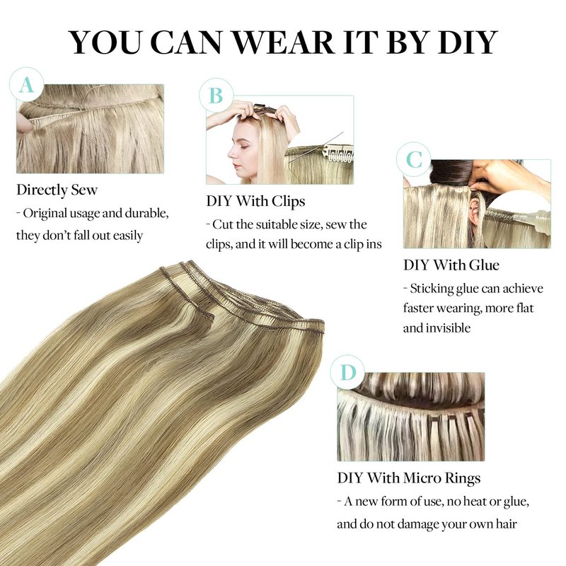 - 【Multiple Ways to Wear the Weft Hair Extensions】DOORES sew in weft hair extensions can be applied in different ways. Directly sew in, with clip in, glue or micro beads. You can increase your hair volume according to your needs. The weft is light and soft that it fits perfectly to your scalp, not easy to find. Easy to Install: making the installation process quick and convenient. Human hair weft should be installed by a professional stylist to ensure the best results.