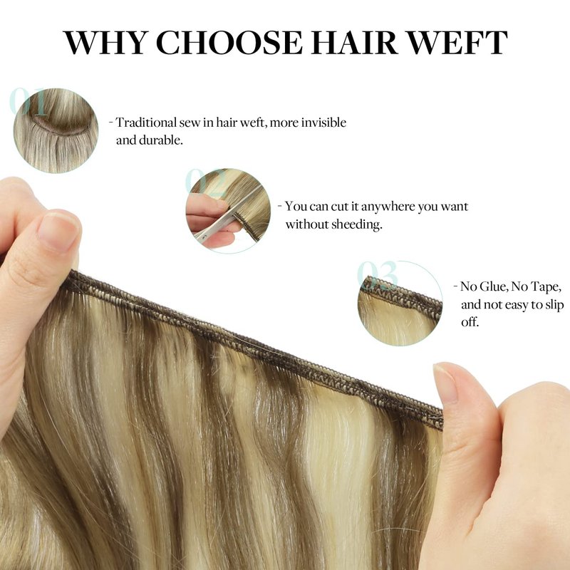 - 【Sew in Weft Human Hair Extensions Natural Soft & Durable】 Made of 100% remy human hair, natural silky appearance and soft touch, natural luster, no tangling, no shedding, full from top to end, blend well with your own hair. Sew in weft hair extensions used the double weft process, so that the weft hair extensions are not easy to fall off and can last longer.