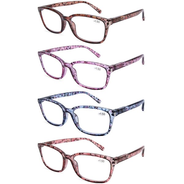 DOOViC 4 Pack Computer Reading Glasses Blue Light Blocking Anti Eyestrain Spring Hinge Stylish Readers for Women 3.00 Strength