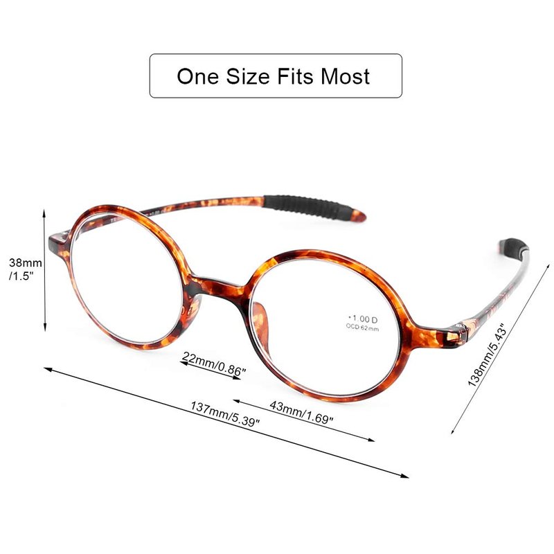 DOOViC Round Reading Glasses Flexible Lightweight Readers Glasses Fashion Design Tortoise for Men & Women +3.00 Strength