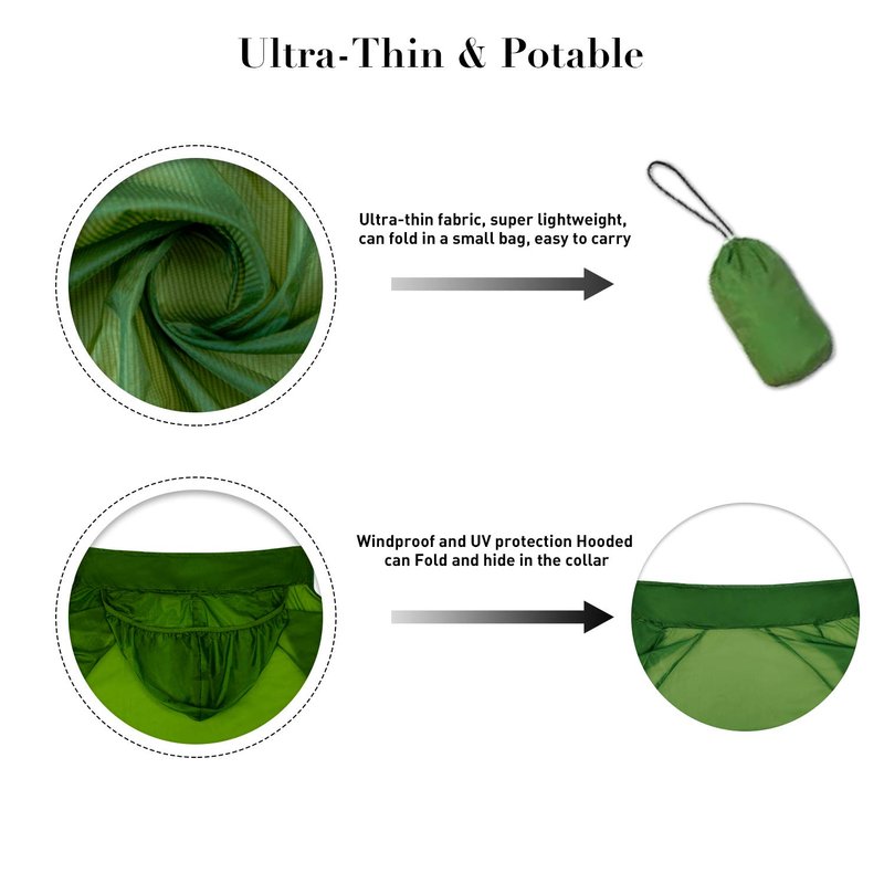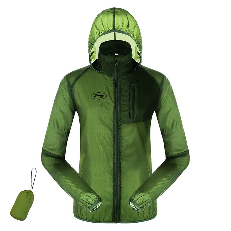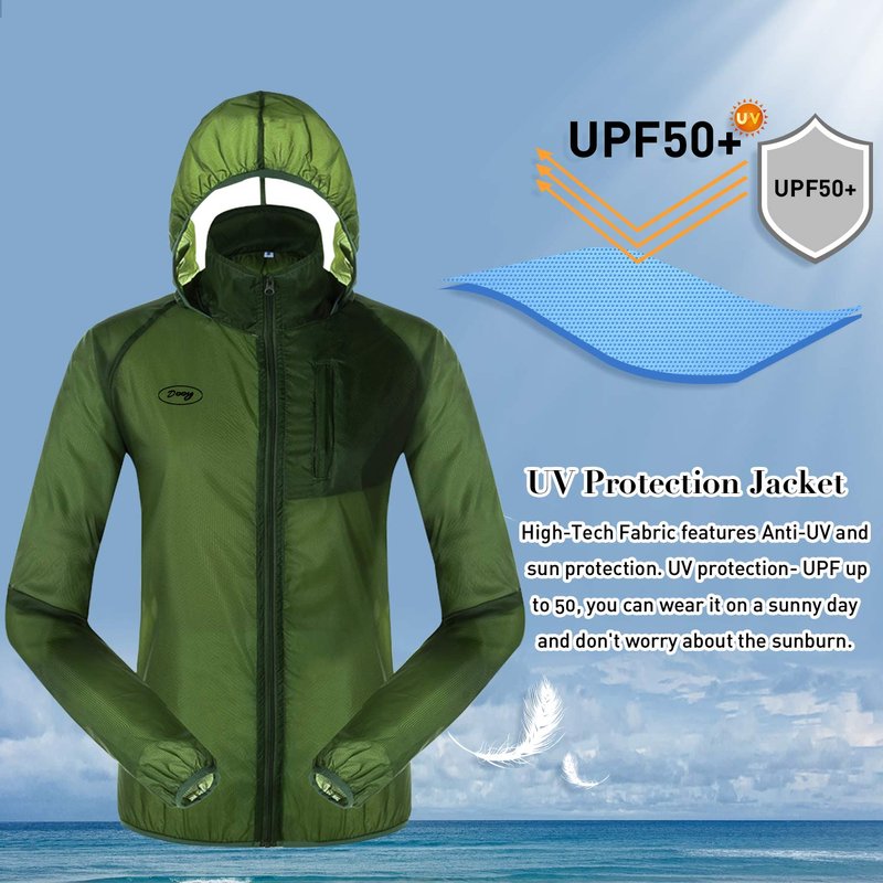 Dooy Sun Protection Jacket Ultra Light Thin Breathable Packable Outdoor Cycling Jacket Hoodie Skin Clothing for Men & Women(Green,2XL)