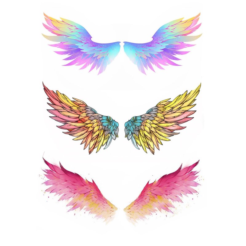 Dopetattoo 6 Pcs Temporary Tattoo Women Angel Party Favors Wing Sleeve Face Body Rainbow Tattoo Fake Tattoos