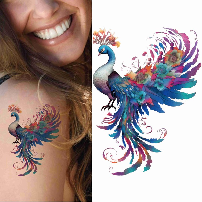 Dopetattoo 6 Sheets Colorful Phoenix Temporary tattoo Fake Tattoos for Woman Adults