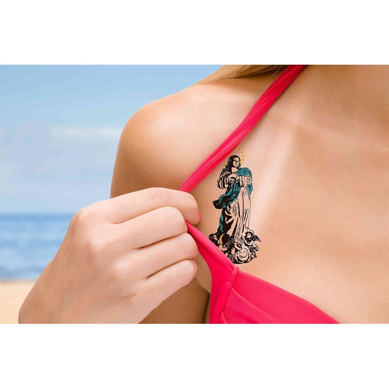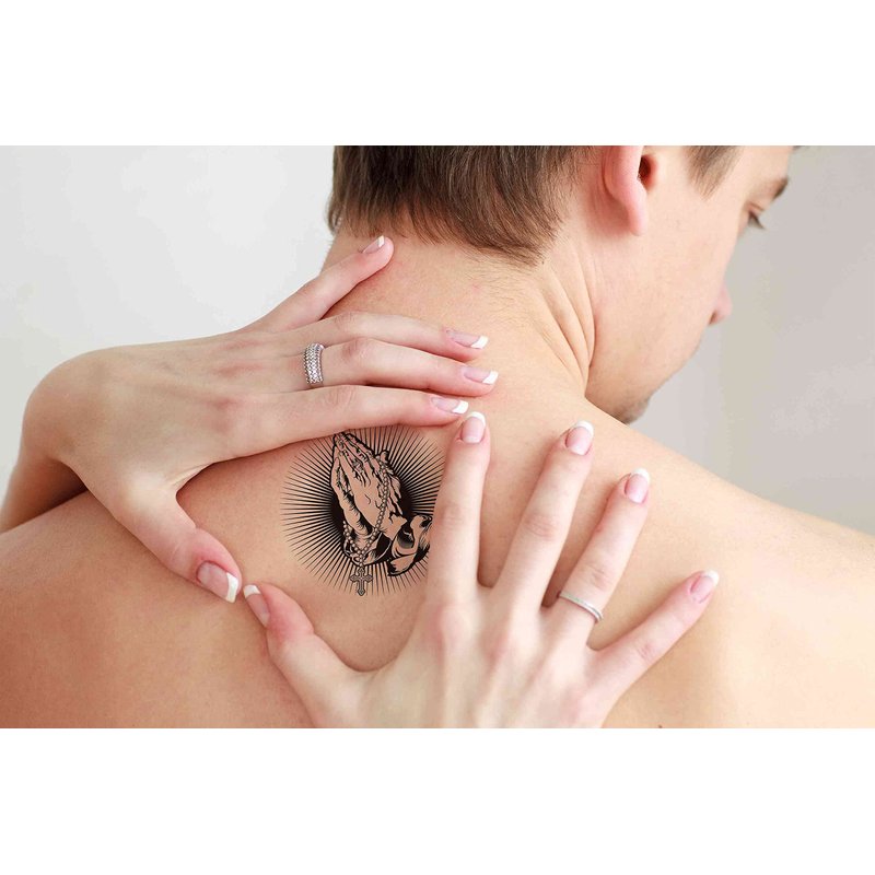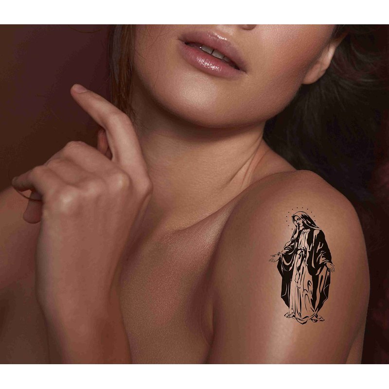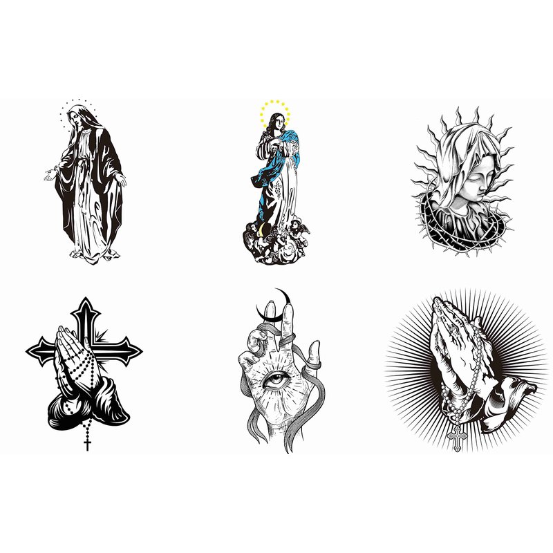 Dopetattoo 6 Sheets Temporary Tattoos Virgen Mary Praying Hands Cross Temporary Tattoo Neck Arm Chest for Women Men Adults