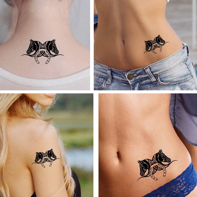 Dopetattoo Six sheets Temporary Tattoos for Men and Women Horse Heads with Horseshoe Fake tattoos for Men Women Neck Arm Chest