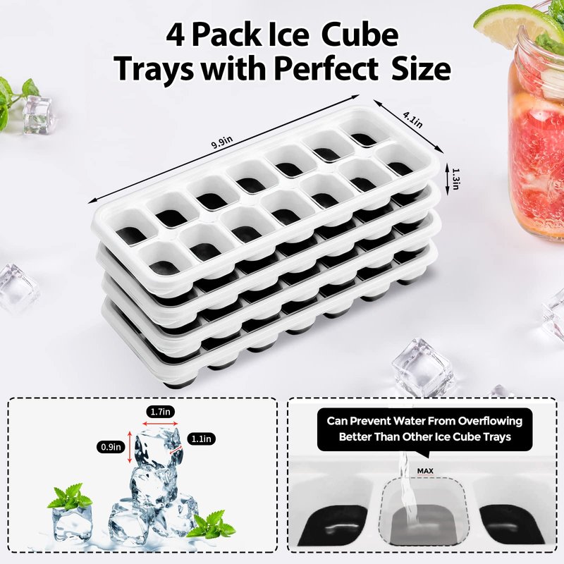 - Lids Lifter Designed: So as to be more convenient to use removable lids, each cover is designed with two lid lifter. This humanized ice tray allows you to make perfect size ice cubes while preventing spills and the freezing of excess water and keeps ice cubes from absorbing freezer odors. Moreover, these easy-release trays stack easily and neatly in the freezer without sticking. Each tray makes 14 nice-sized cubes for a total of 56 (Each capacity of 27 ml).