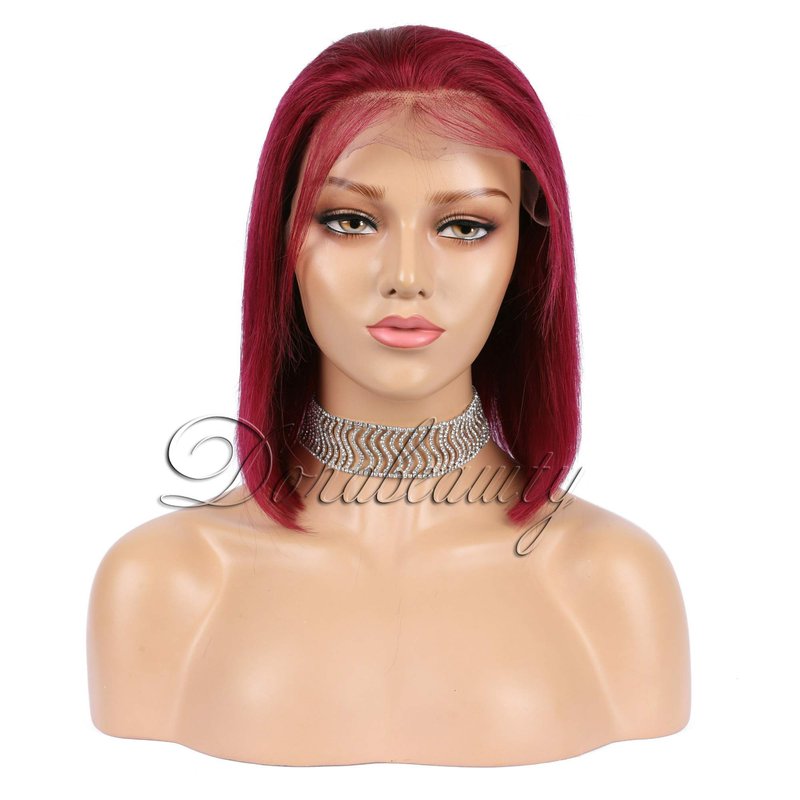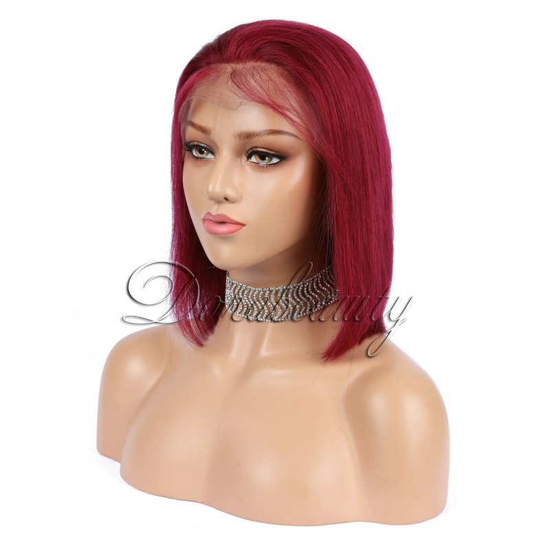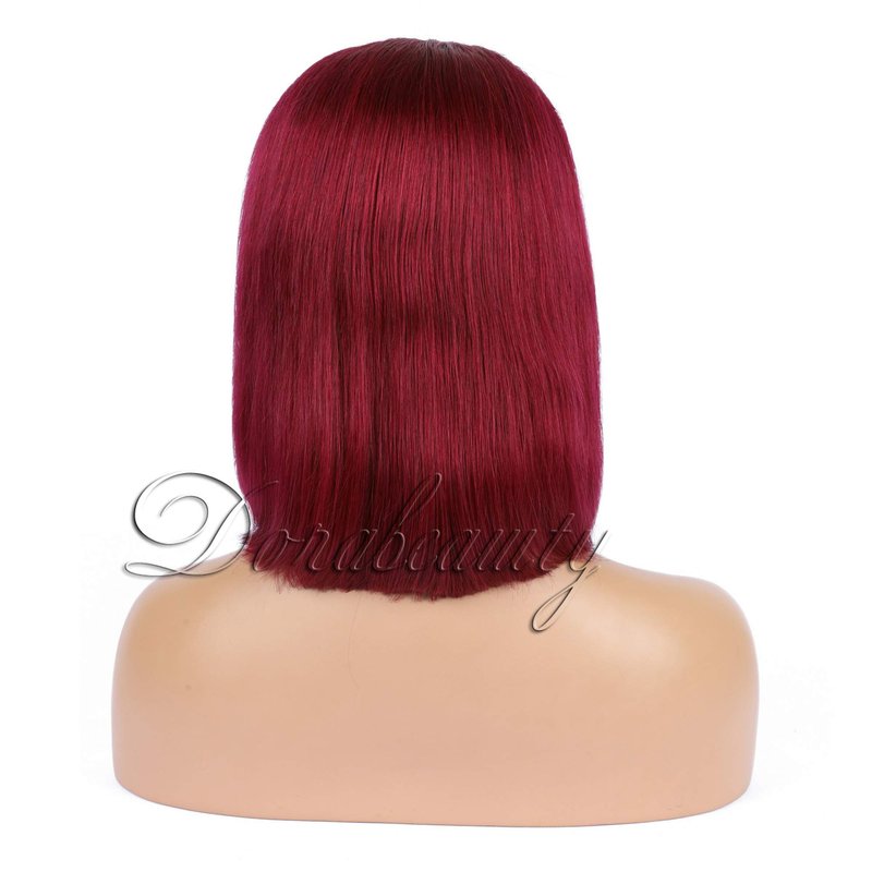 - 100% Unprecessed virgin human hair lace bob wig,burgundy straight hair,10" inch