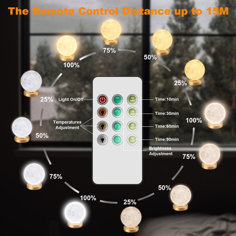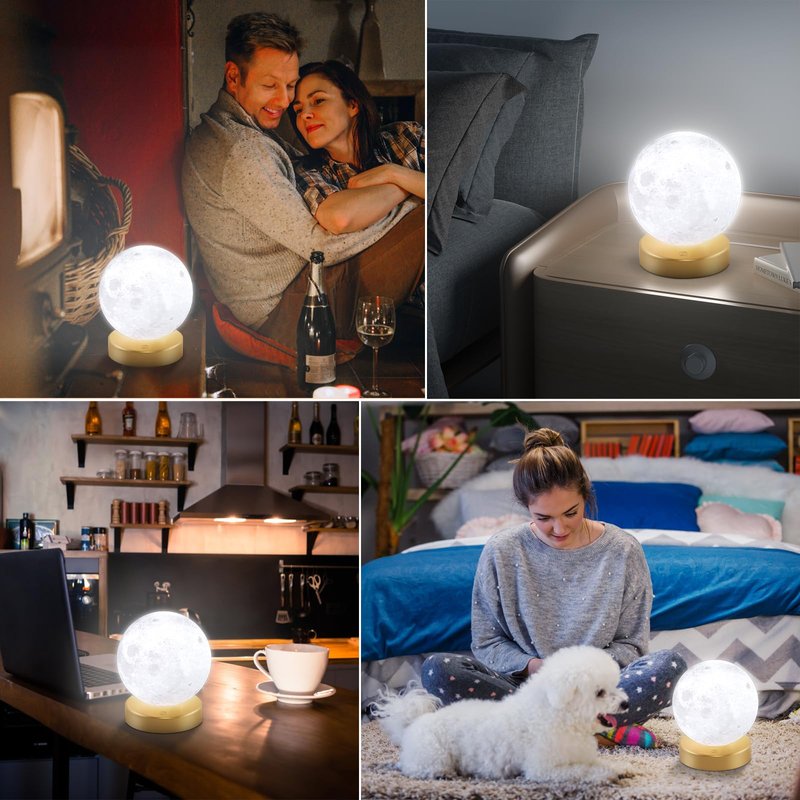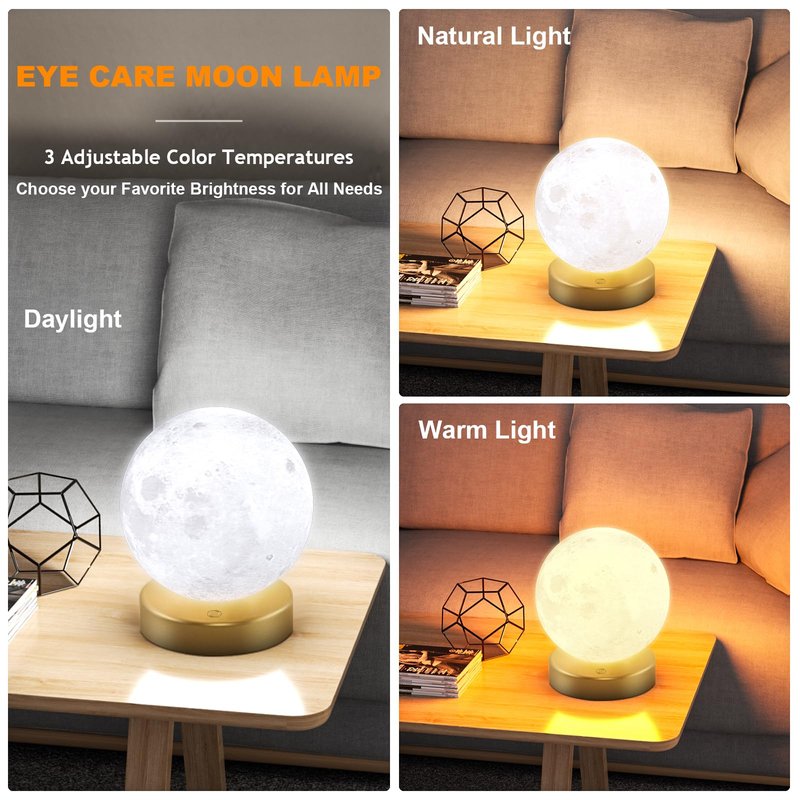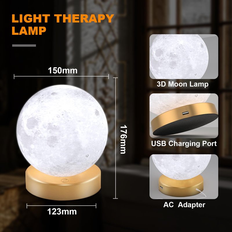 - 3D Printed Moon Light : This light therapy lamp made with 3D printing technology, realistic full moon shape, the surface of the moon lamp is very close to the lunar moon, novelty and charming; Create a peaceful environment in your bedroom and help you enter a blissful slumber with the bright moon light.
