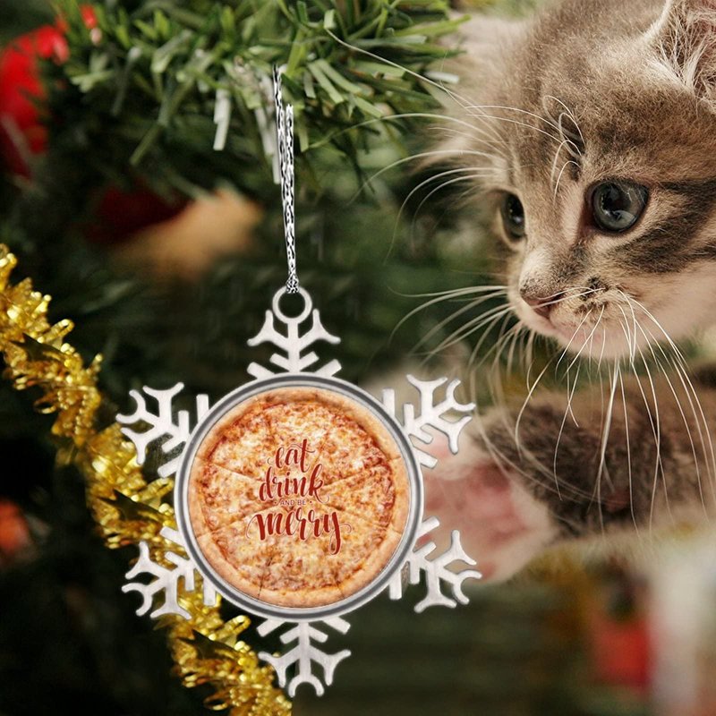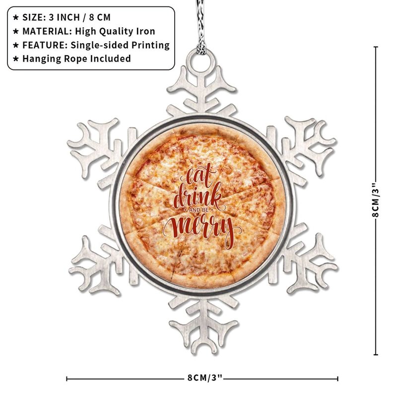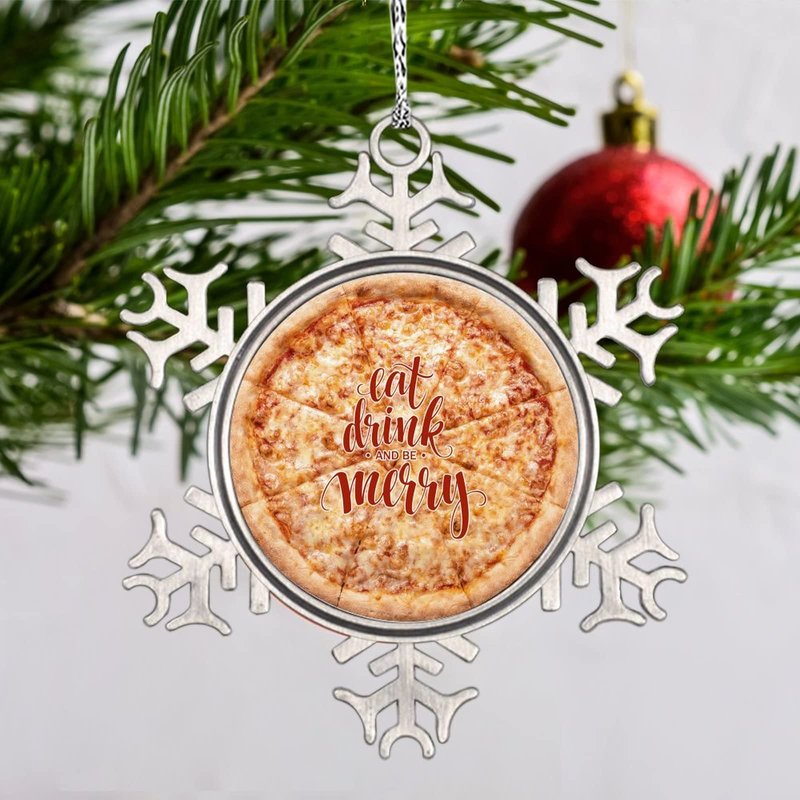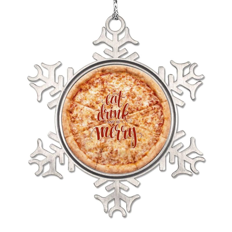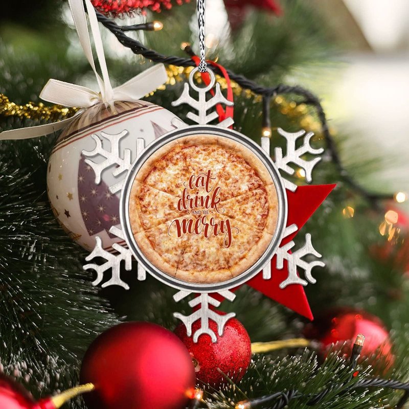 DOREENABE Snowflake Ornament Vegan Truffle Pizza Ornaments for Christmas Trees Eat Drink and Be Merry Cute Food Christmas Ornaments 2023 Funny Metal Souvenir Xmas Tree Hang Pendant Exchange Gift