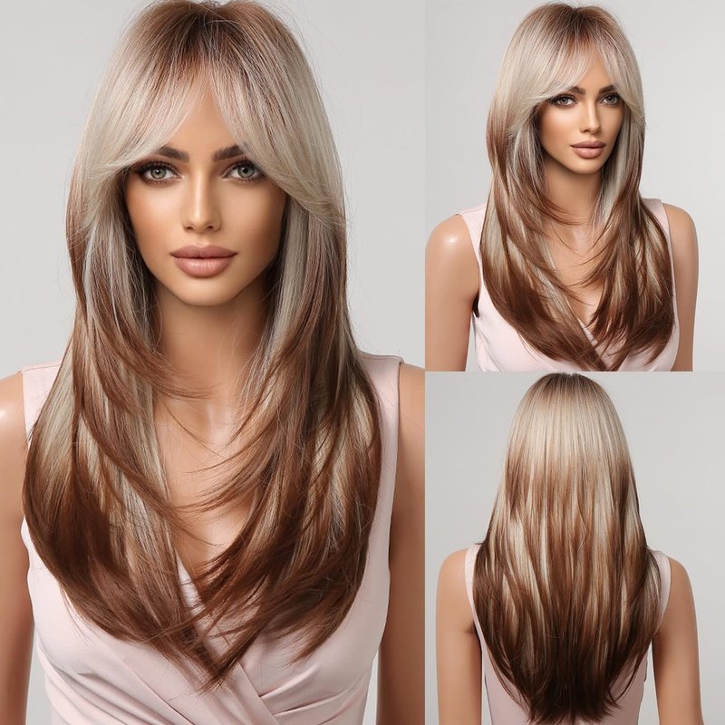 - 【Get A Surprise Wig】This beautiful long ombre dark brown blonde wig with bangs can be used not only as a daily use,but also for cosplay parties,showing your confidence and beauty in minutes.Also it will bring you more surprises,you can trim the long straight wigs as you like,what's more,it can be dyed and permed (the temperature is controlled under 150 ℃),you will get a new fashionable wig for long hair.