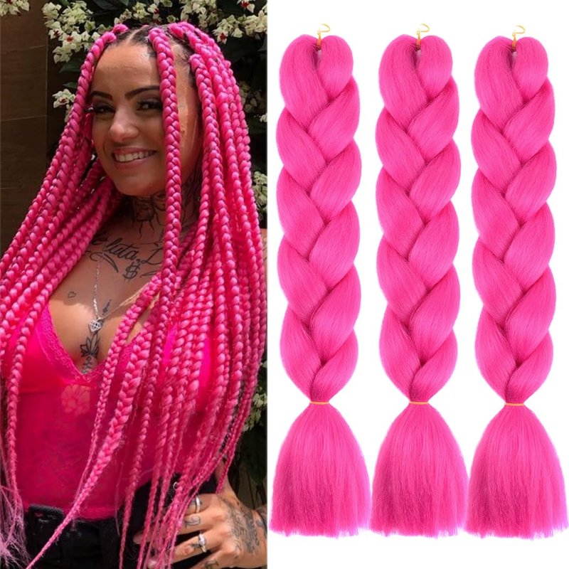 DOREN Jumbo Braiding Hair Extensions for Black Women Synthetic Crochet Braids Hair DIY Box Braids 100g/pc 3Packs/Lot(24Inch, A18 Rose Red)