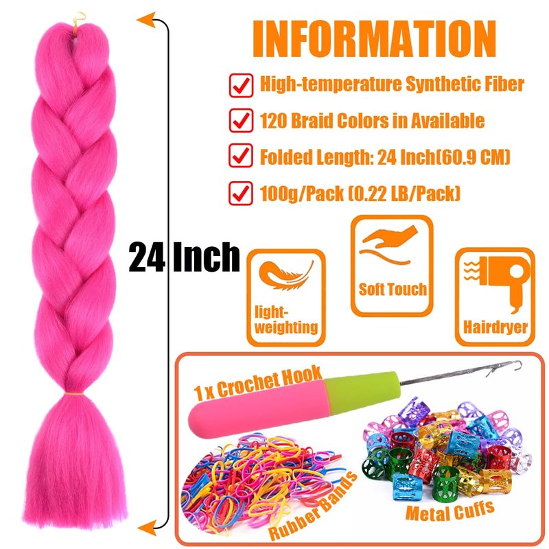 - 【Package Contains】3PCS Jumbo Braiding Hair Extensions + 1 Crochet Hook + Some Rubber Bands and Metal Cuffs. Fully accessorized and ready to knit upon receipt.