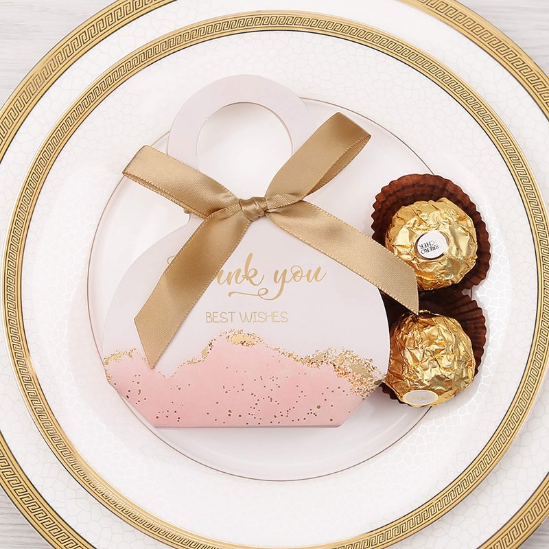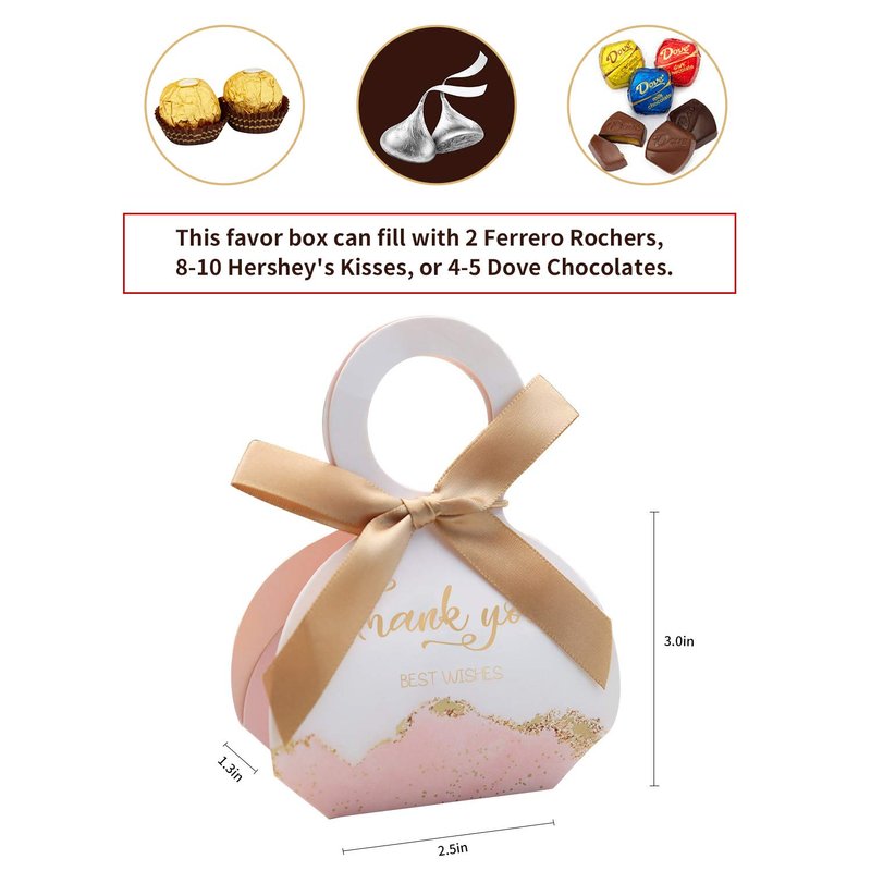 - INCLUDES: our small favor candy box includes 50pcs Pink favor candy box boxes in bulk and 50 gold rubber bands with bow-knot ribbons, made of sturdy and safe paper. no tape or glue required.