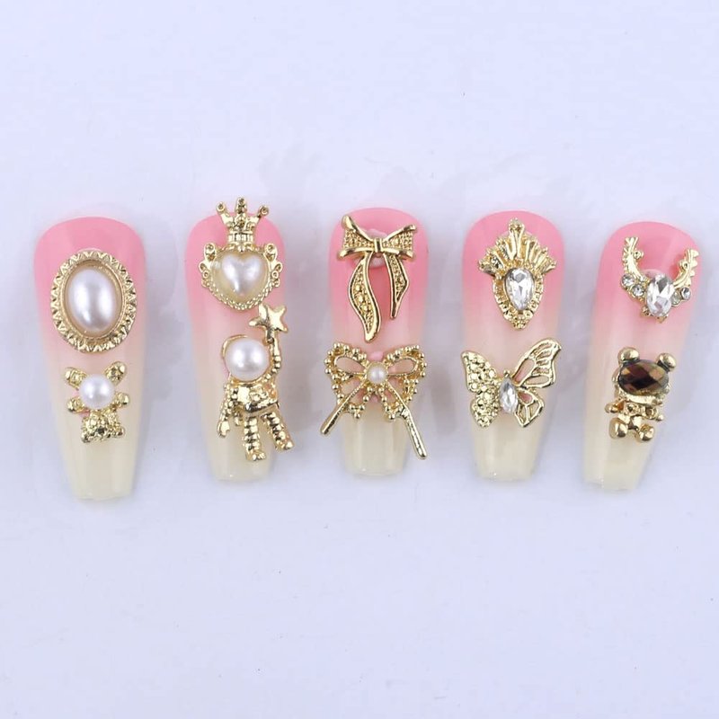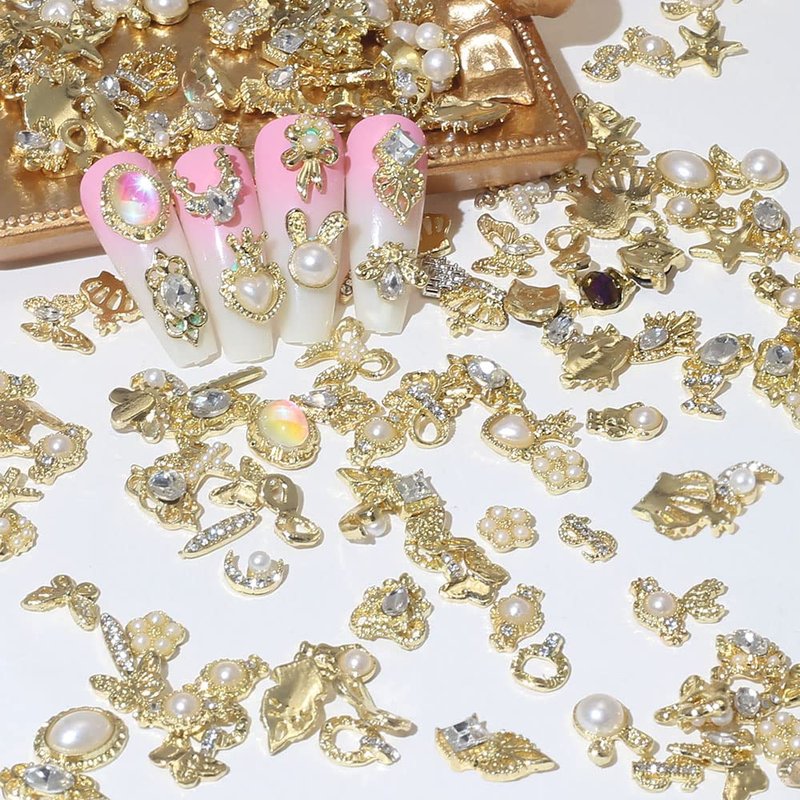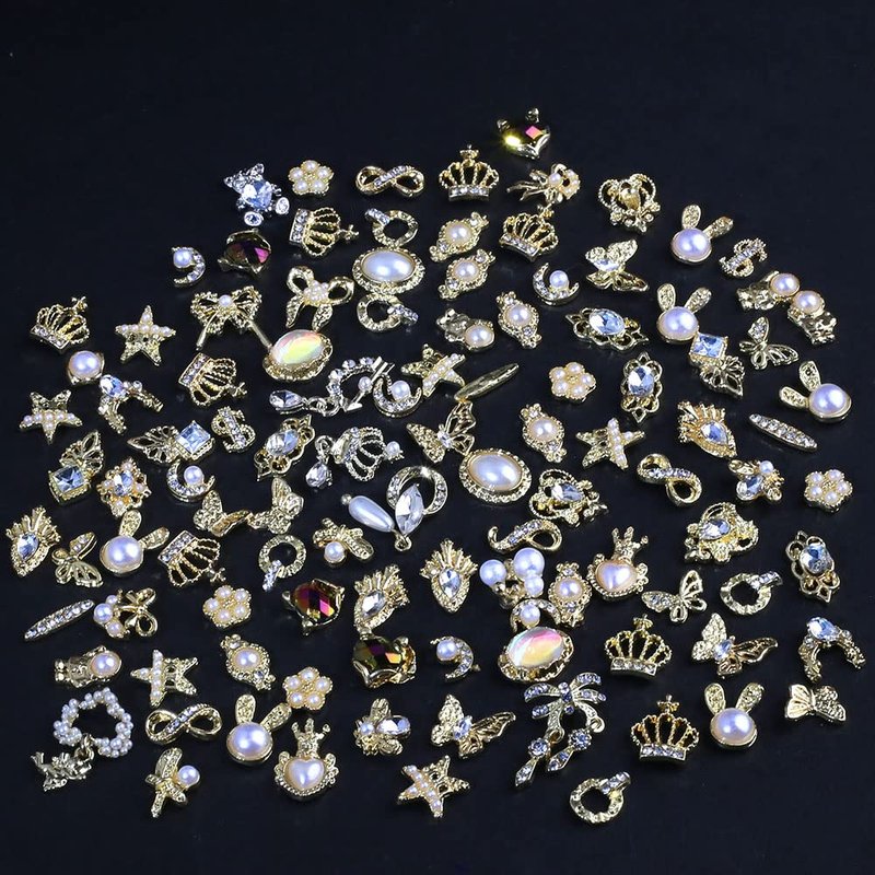 Mixed golden alloy nail charms, luxurious and dazzling.
