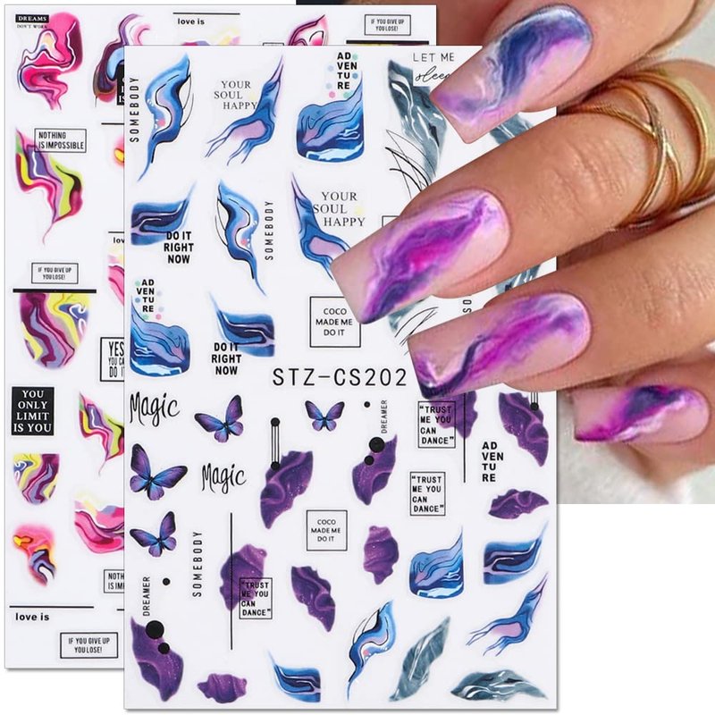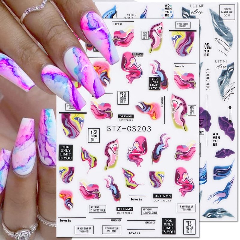 - Colorful Nail Decorations--3D watercolor smoke effect colorful nail stickers, let your nails get rid of monotony, perfect for fingernails, toenails, and false nails, both for adult women and teenage girls.