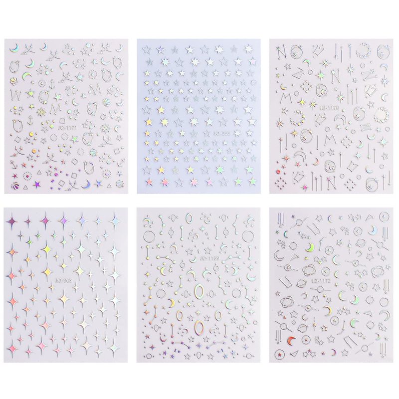 - 【Quantity and Size】6 sheet / set, You will get 6 sheets aurora silver stars moon planet nail stickers, and size of each sheet nail sticker is 2.87 x 3.62 in.
