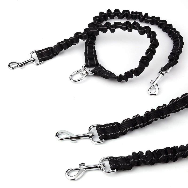 - 🐾【Premium Material】: We prioritize the quality of our double dog leash. The hardware is made of strong and durable metal, ensuring its long-lasting reliability. The straps are constructed from high-quality nylon, which is not only chew-proof but also easy to clean. The elastic bungee extension helps absorb the shock of sudden movements, reducing the feeling of pulling and providing comfort for both you and your dogs.