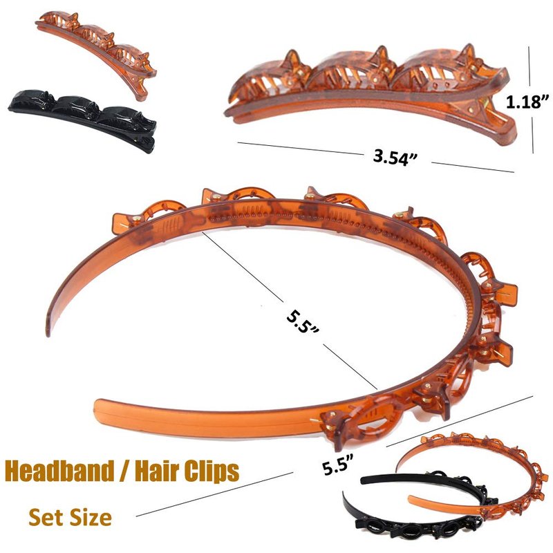1 pack hairbands , 2 pack big alligator clips (Black or brown), Made with ABS friendly material, and strong toughness, not easy to fall off, your DIY hairstyle beauty twister tool, gift idea for friends, lovers and sisters, also for your family.