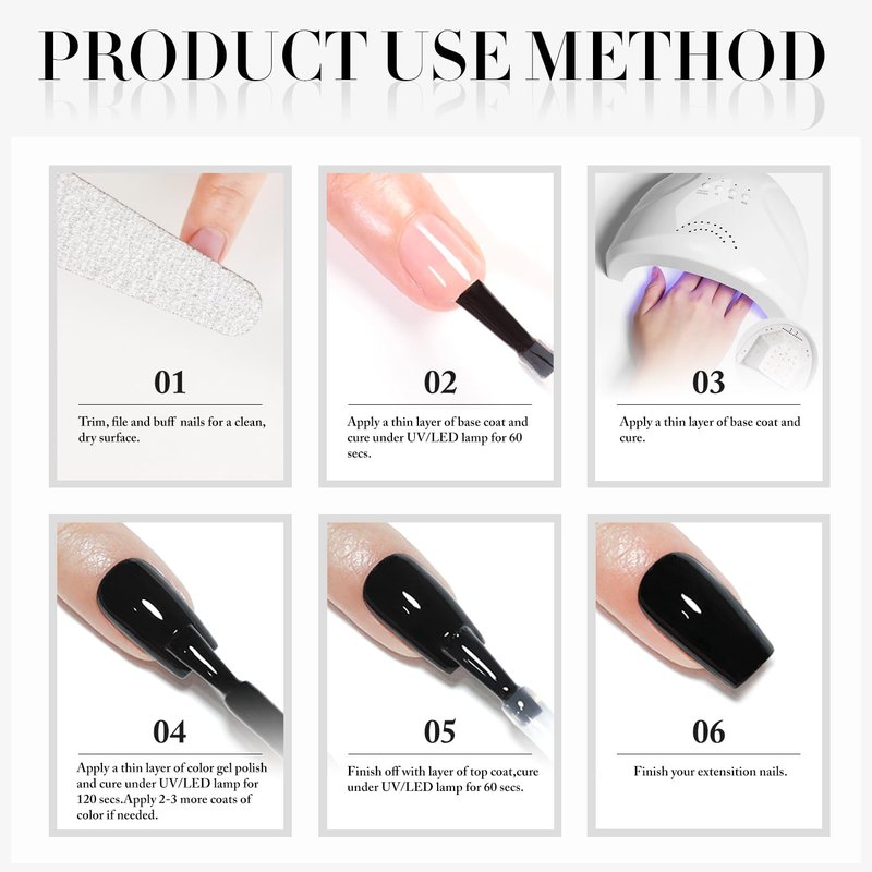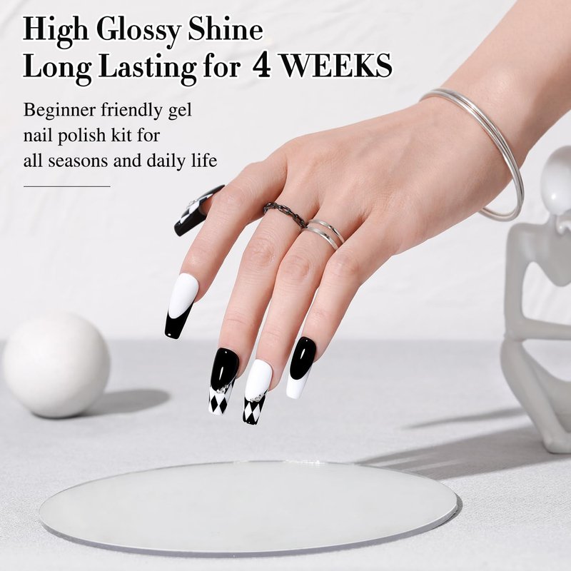 - All SEASON GEL POLISH: you will get 2 pcs 15ml gel nail polish with Pure white And pure black Color , need to be cured under UV or LED Lamp for 60-120s. Must apply with Base Gel and Top Coat. Please shake the bottle or warm it with hot water before use, to achieve a better effect.