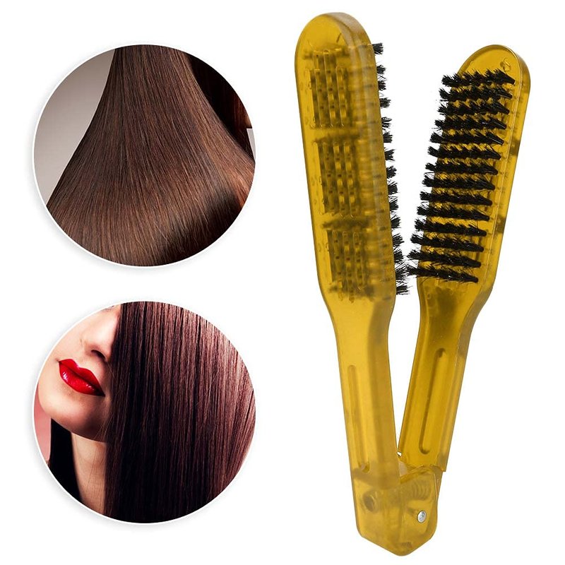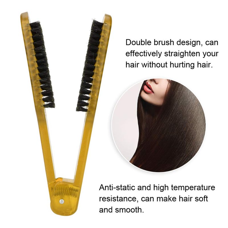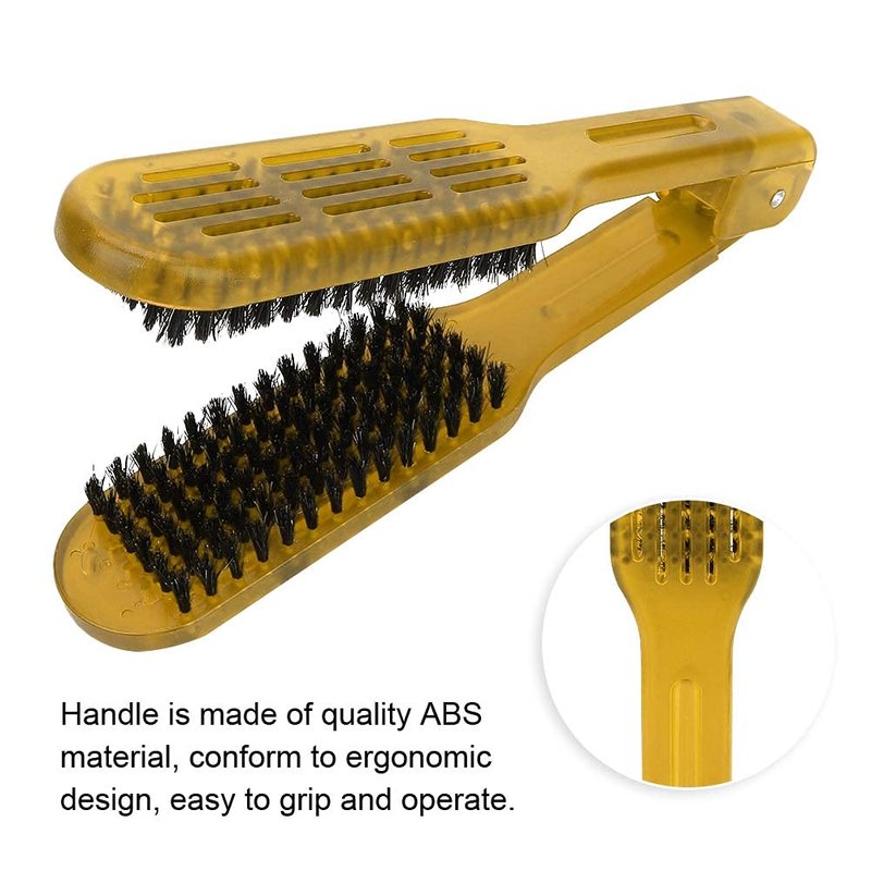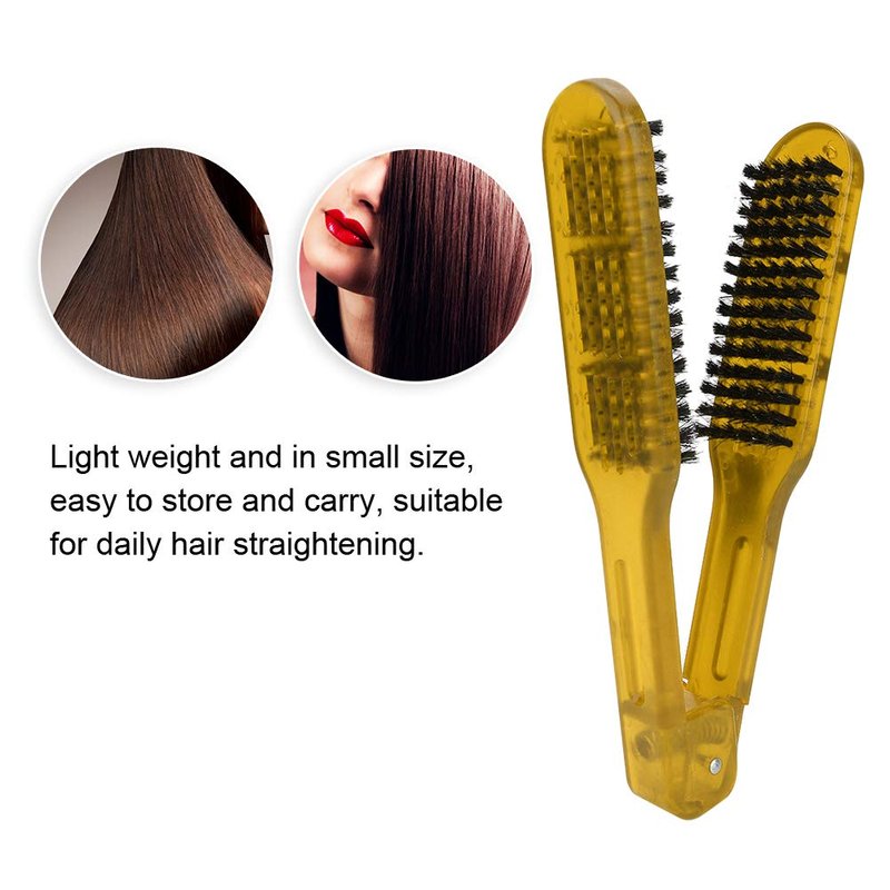 Double Sided Brush, Clamp Hair Brushes Clamp Hair Straightening Comb Straightener Anti Static Styling Comb Hairdressing Tool V Shape Hair Splint Combs Women Men Brushes for Home Barber Shop(Yellow)
