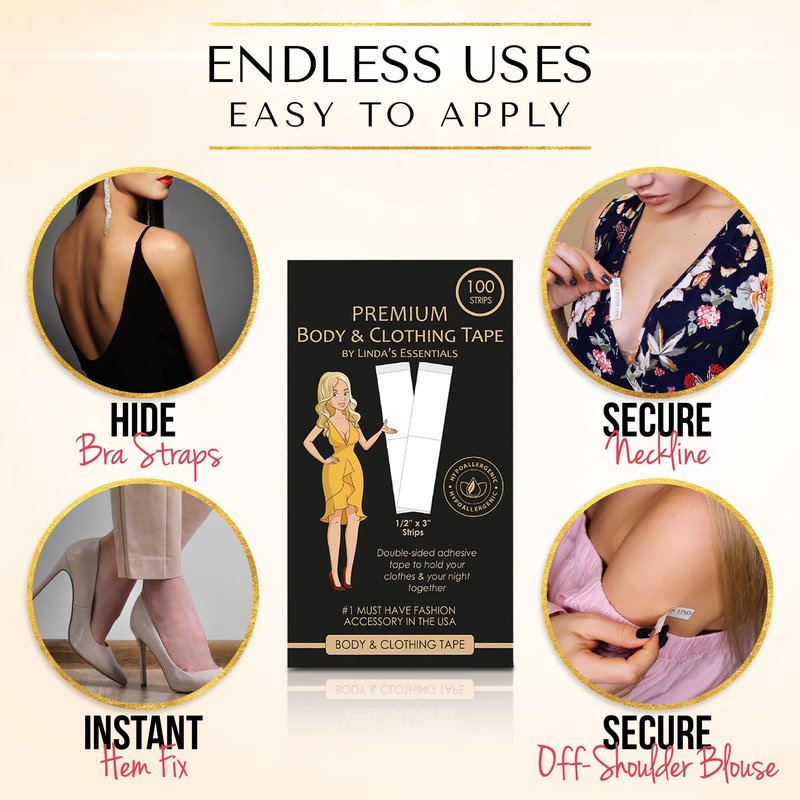 Take control of your clothes with Linda’s Essentials premium body and clothing tape; designed to help you with all your fashion emergencies and clothing adjustments. Hold your clothing and hemlines securely against your skin or undergarments, all while ensuring maximum comfort. SKIN & FABRIC FRIENDLY - Each strip in the pack is carefully produced with the highest quality adhesiveness to ensure perfect comfort on your skin. Our hypo-allergenic apparel tape is perfect for those with sensitive skin; it can be applied directly without causing any rashes or irritation. Our tape also ensures that you do not have to deal with any annoying residue on your fabric after removal. fashion hem tape for dress double sided tape for fabric double sided fabric tape hem tape for pants hem tape double sided tape for clothing hemming tape for dresses silicone gripper tape for clothing fabric tape double sided double stick tape for clothes hem tape no sew no iron bra tape for strapless dress double sides tape clear boob tape tape for women double sided boob tape lingerie tape skin tape double tape for clothes dress tape fabric to skin dress tape double sided for skin body tape body tape for skin double sided tape clothing double sided tape clothing tape fabric tape for clothes garment tape double sided tape for clothing clothing tape double sided bob tape for strapless dress double sided boobytape double sided clothing tape double sided fabric tape for clothing double sided skin tape body tape for clothes clothes tape double sided body tape double sided tape for cloth