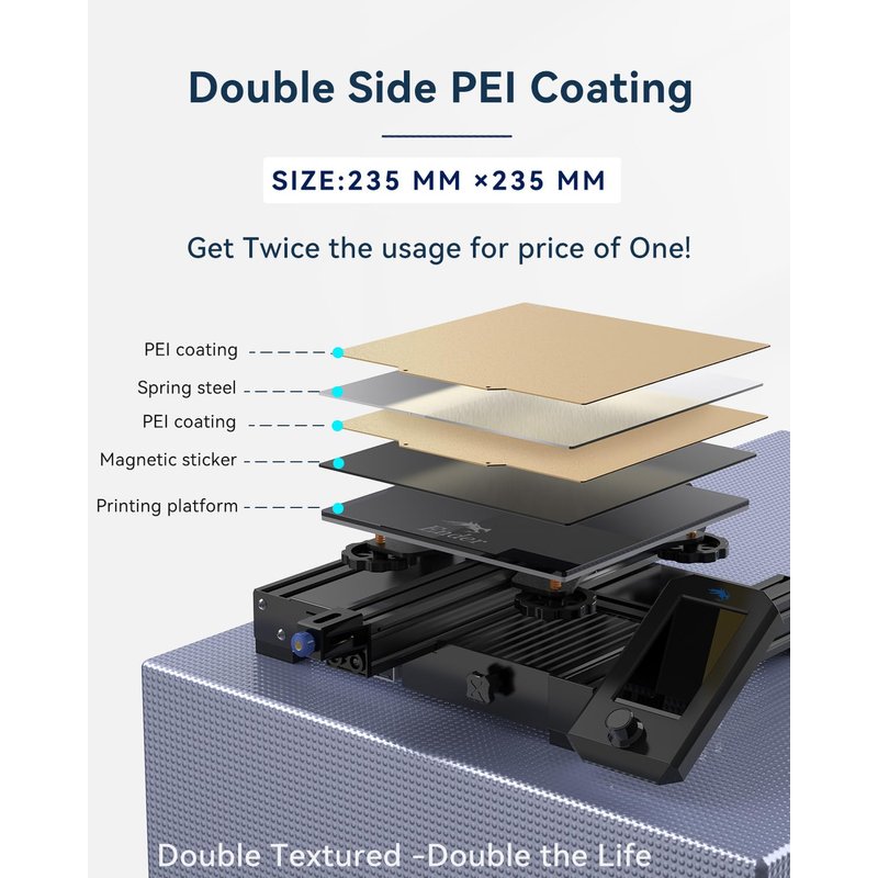 Double Sided Textured PEI Sheet 235mmx235mm for Neptune 3 Pro/Neptune 4/Kobra/Creality Ender 3/Ender 3 Pro/Ender 3 V2/Ender 3 S1/Ender 3 S1 Pro/Ender 3 Neo/Ender 3 V2 Neo 3D Printer