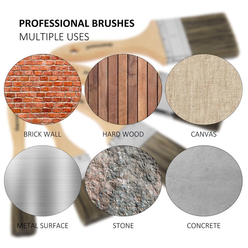 - 【Easy to Clean】It is easy to clean after every use, just remove wet paints or stains from brushes, wash and rinse the brushes with water or solvent according to different paints or emulsion, then hang them on a hook or rack for drip-dry, and put it in storage very conveniently, get ready for next use. Thus, our house paint brushes could be reused for multiple times, it is great value for your money.