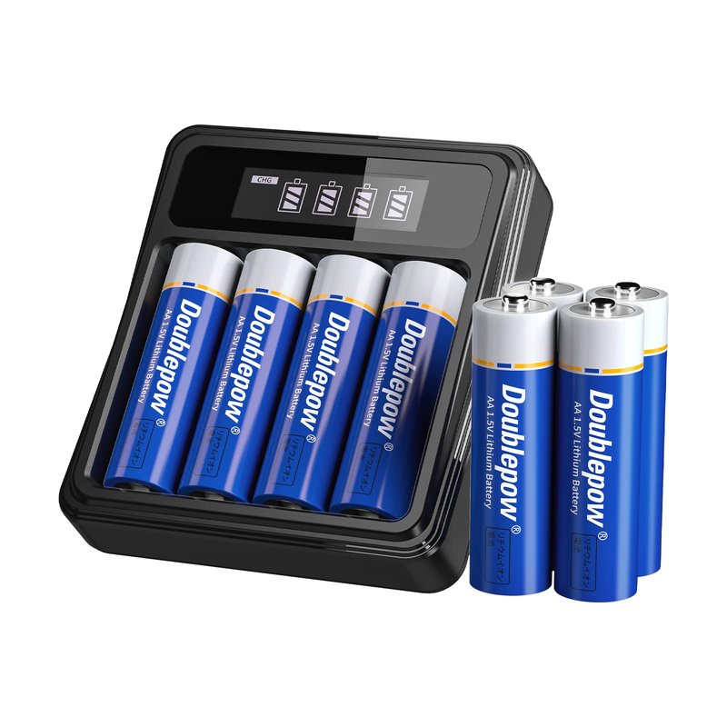 Doublepow AA Rechargeable Lithium Battery with LCD Battery Charger,3400mWh High Capacity Double A Li-ion Batteries with 4 Bay Battery Charger,8 Pack of 1.5V AA Lithium Battery