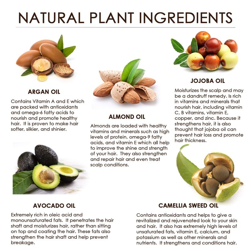 PACKED WITH NATURAL ESSENTIAL OILS - Argan (Moroccan) Oil, Avocado Oil, Almond Oil, Jojoba Oil, and Camellia Seed Oil promote blood circulation improvement, restore, and give your hair strength.