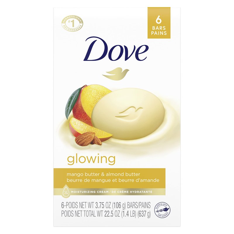 Dove Beauty Bar Gentle Skin Cleanser Moisturizing for Gentle Soft Skin Care Glowing Mango Butter and Almond Butter More Moisturizing Than Bar Soap 3. 75 oz 6 Bars