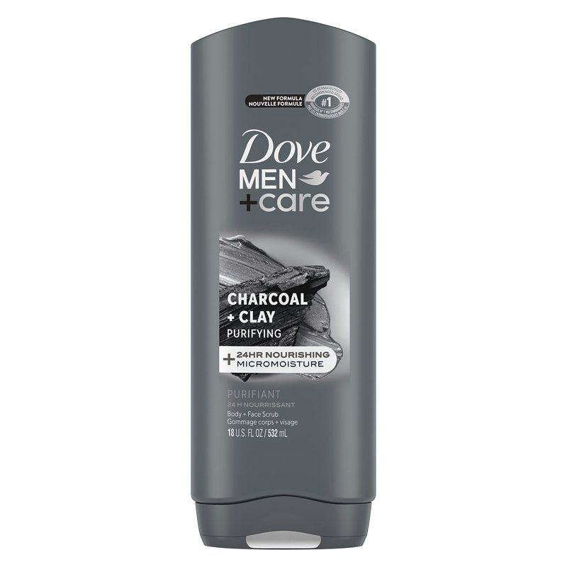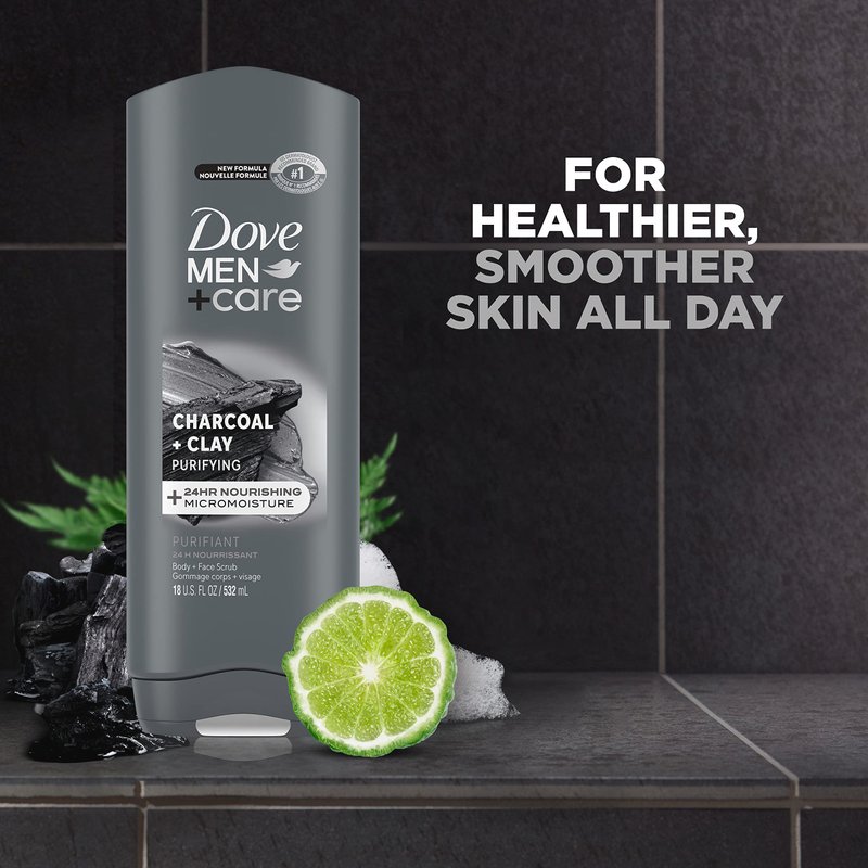 Dove Body and Face Wash Purifying Charcoal + Clay Body Wash for Men with 24-Hour Nourishing Micromoisture Technology 18 oz