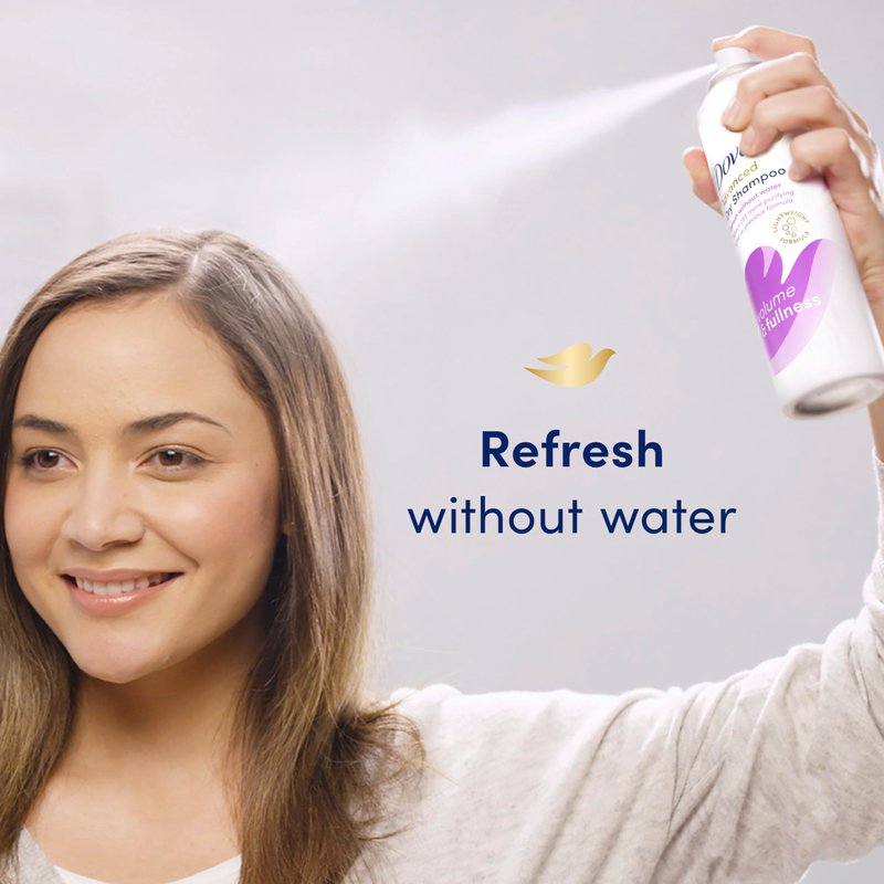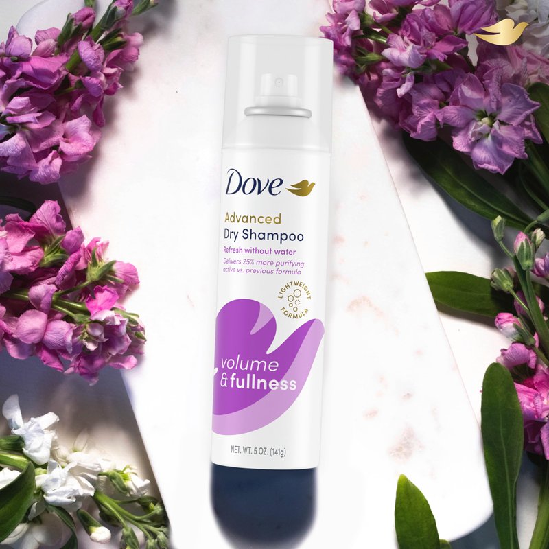 - Dove dry shampoo works with just a few quick sprays and brush strokes