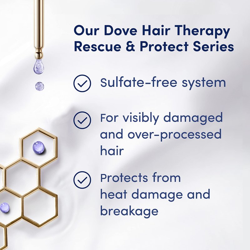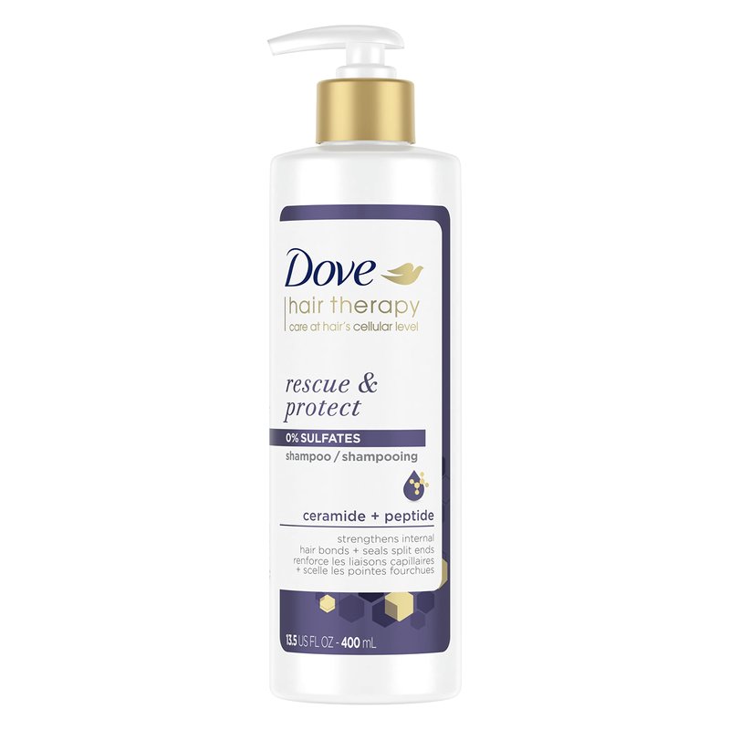 - Dove Hair Therapy Rescue and Protect Shampoo strengthens internal hair bonds, seals split ends and protects hair from heat damage and breakage