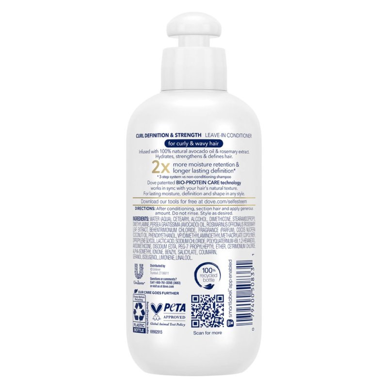 Experience the ultimate curl care with Dove Curl Definition & Strength Leave-In Conditioner. With 100% natural avocado oil and rosemary extract, our conditioner promotes moisture retention and long-lasting definition for your curls and waves. Say goodbye to frizz and welcome smoother, bouncier curls with Dove’s Bio-Protein Care technology. Embrace the beauty of your natural hair with Dove.