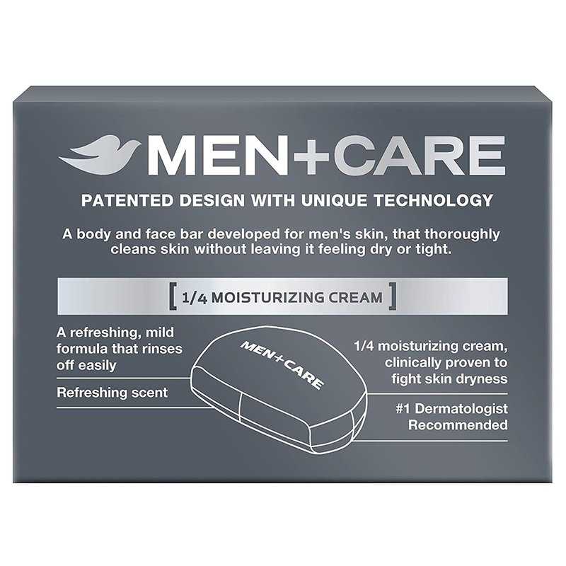 Looking for a men's bar soap that will thoroughly clean your skin and leave it feeling hydrated, cool, and comfortable? Treat your skin every day with the mild but effective formula of Dove Men+Care Clean Comfort Body and Face Bar. More than just a regular men’s bar soap, this bar from the #1 Dermatologist Recommended Men’s Brand has a formula that cleanses your skin and delivers refreshment and skin comfort. This body bar is part of the Dove Clean Comfort range and unlike regular bar soap for men which can dry your skin out, the Dove Men+Care bar contains ¼ moisturizing cream that helps maintain skin’s hydration and moisture levels, while also delivering a refreshing clean. Dove Men+Care understands the importance of having a simple daily routine for caring for your skin. This Dove Clean Comfort Body and Face Bar is noncomedogenic and can be used across your whole body to gently clean skin and is even mild enough for use on your face. In the shower, simply wet the Dove Men+Care bar and rub it between your hands to produce a light foam lather before working it over your skin and rinsing thoroughly. The creamy foam rinses away easily and the non-greasy foaming lather will provide a comfortable, refreshing clean.