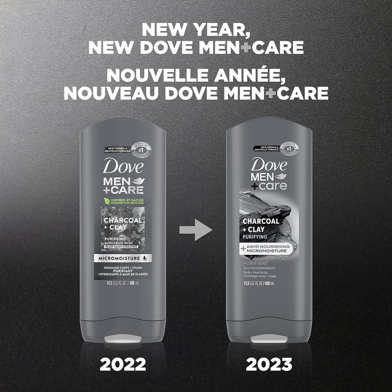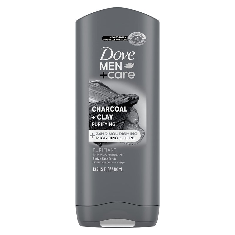 Dove Purifying Charcoal + Clay Body and Face Wash with 24-Hour Nourishing Micromoisture Technology Body Wash for Men, 13.5 oz