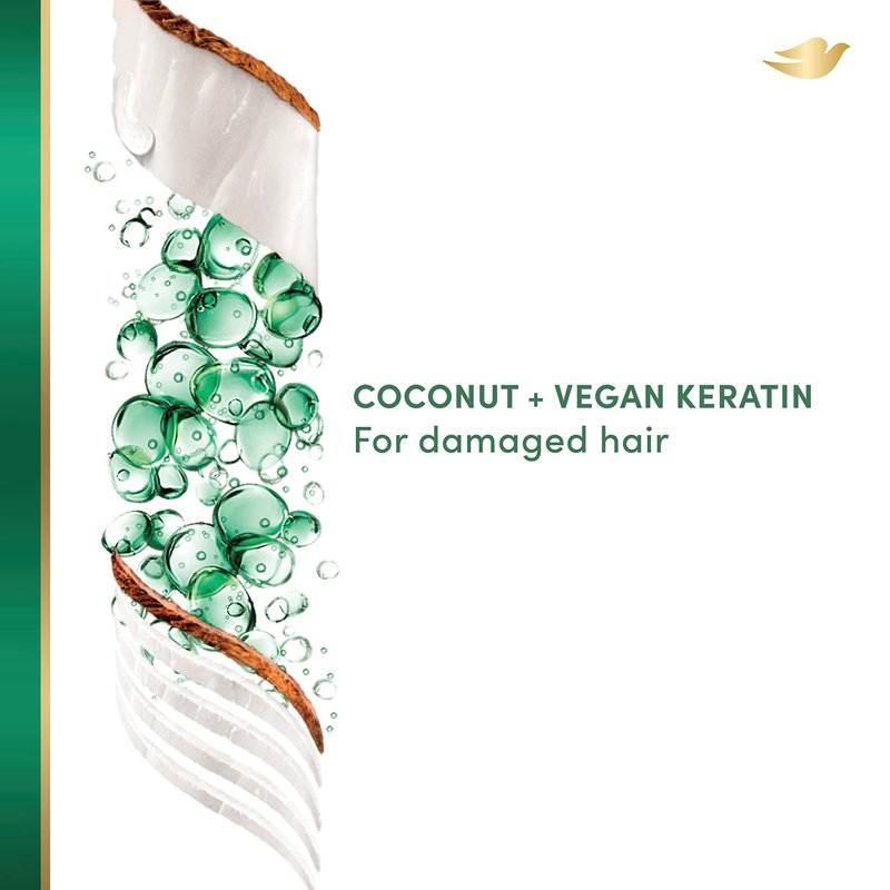 - FOR DAMAGED HAIR: Beautiful and healthy-looking hair is just a wash away; this Dove RE+AL Bio-Mimetic Repair Coconut + Vegan Keratin Conditioner is perfect to visibly repair, and strengthen hair inside and out