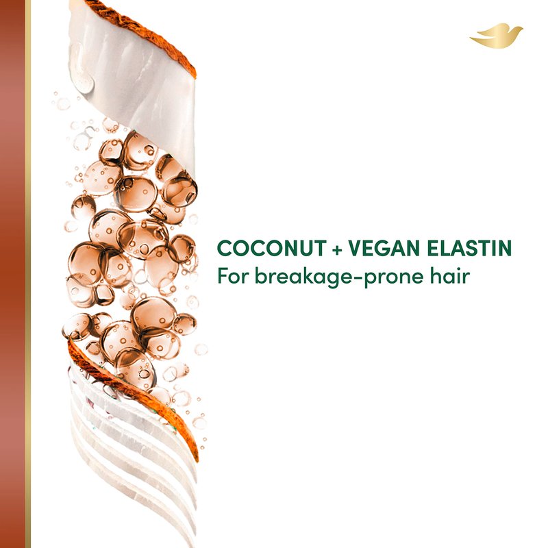 - COCONUT + VEGAN ELASTIN: Beautiful and healthy-looking hair is just a wash away; this Dove RE+AL Bio-Mimetic Resist Coconut + Vegan Elastin Shampoo is perfect to repair and strengthen hair from inside and out